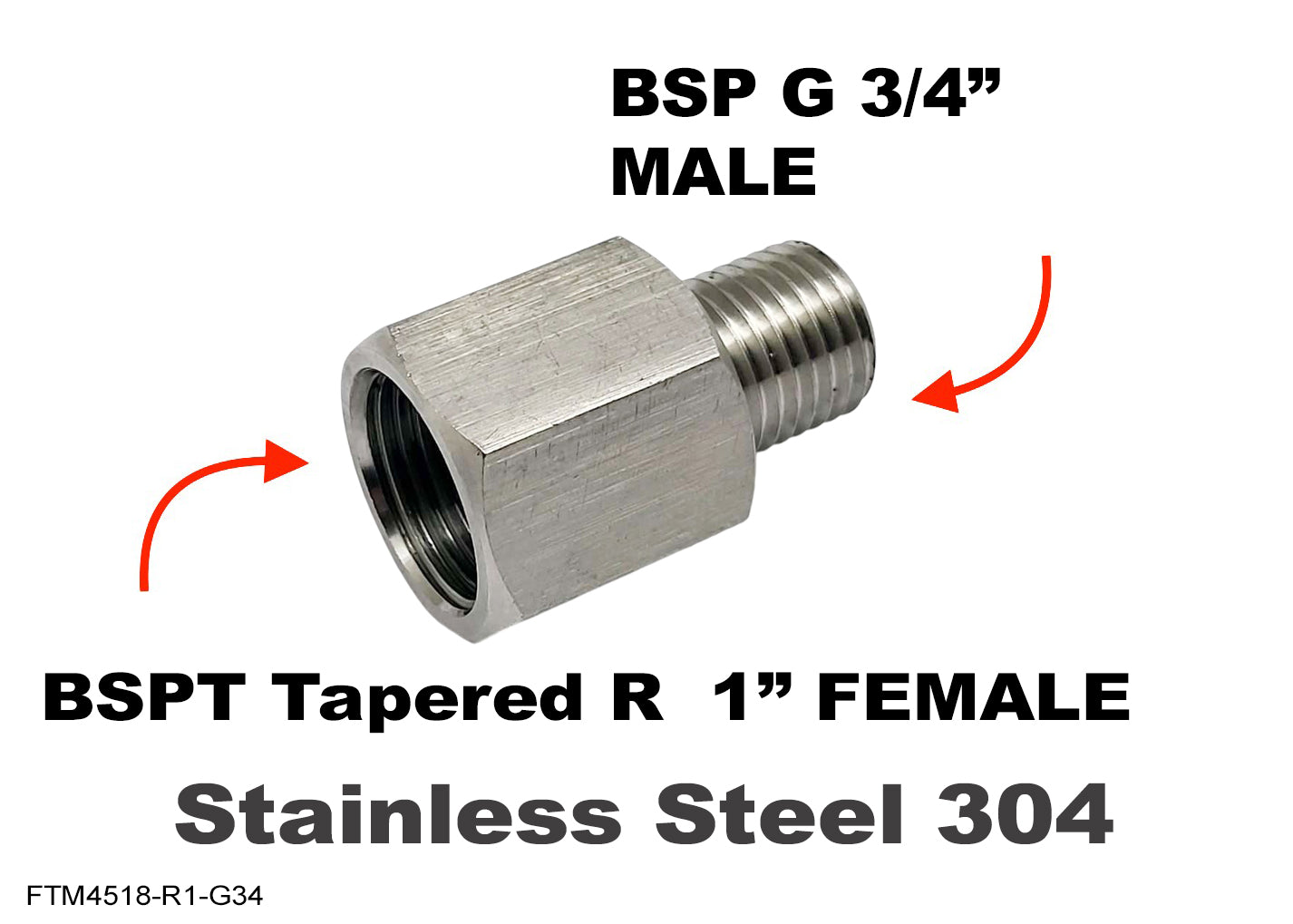 • Brand autobahn88 Manufacturer Part Number POFTM4518-R1-G34 ITEM FEMALE BSP TAPERED TO MALE BSP FITTINGS SIZE (FEMALE) BSPT Tapered R 1" FEMALE SIZE (MALE) BSP G 3/4" MALE Materials Stainless Steel 304 Qty 1 PC Application Sensor Port / Pipe Hole conversion UPC Does not apply Custom Production Time The fittings is custom made , Handling Time is 5 day